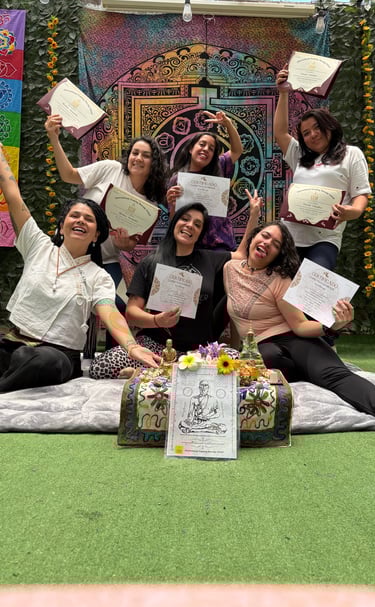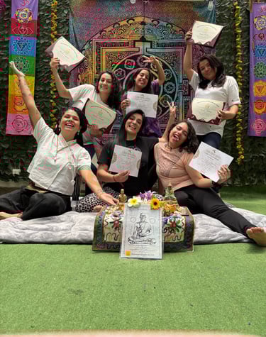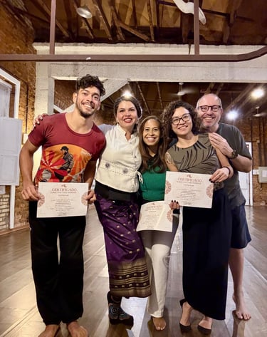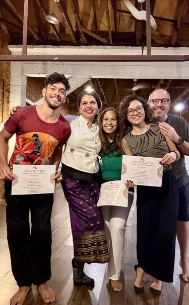 Treinada e certificada na Tailândia, ela oferece cursos de artes terapêuticas de alta qualidade, garantindo um aprendizado eficaz em espanhol, português e inglês para os estudantes.
